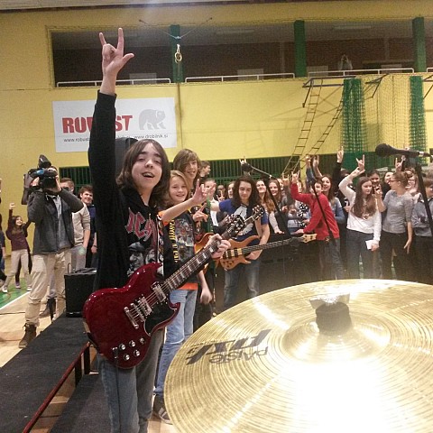 Elementry school Žalec has got new Tama drums with Sabian cymbals, Ibanez electric guitar and bass with amplifiers, keyboard and vocal microphones. Let there be school of rock for a long time. "For those about to rock..."